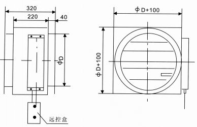 • 此閥平時常閉,通DC24V電開啟排煙,遠距離開啟和復位,輸出開啟電訊號和風機聯鎖電訊號。